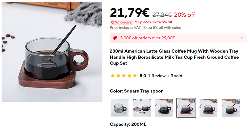 Давно хотел себе стеклянную чашку для чая (ссылка для РФ) с деревянной ручкой и удобной деревянной подставкой (на керамическом блюдце чашка, стоящая рядом, звенит, когда я печатаю на клавиатуре). Там есть разные варианты: без подставки, с подставкой и с ложкой.