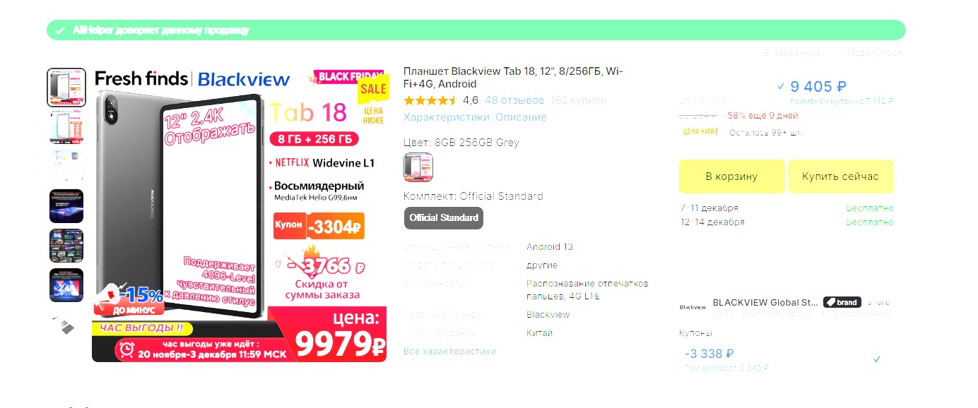 Как обычно, "День холостяка" (11 ноября) на Aliexpress сменяется "Черной пятницей", которая идет сейчас и закончится вечером 3 декабря.