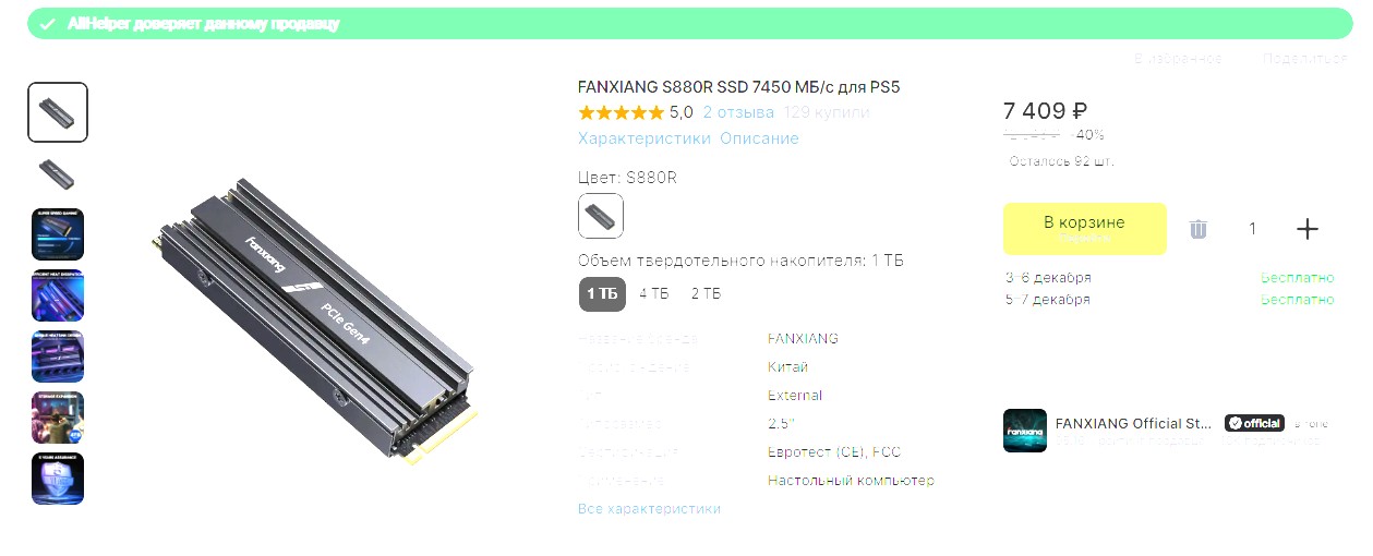 Цены на SSD улетели вслед за оперативной памятью. Кому не критично (для игр, торрентов и т.д.) можно подкупить 1,2,4 Тб M.2 SSD с Алишки. SSD S880R NVMe M.2 может похвастаться скоростью до 7450 МБ/с, обеспечивая высокоскоростную и бесперебойную работу независимо от того, запускаете ли вы приложения, передаете большие файлы или играете.
