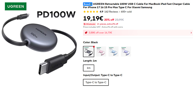 Удобная штука, я его пару месяцев использую. Когда вытягиваешь один конец кабеля, то другой конец вытягивается на точно такое же расстояние. Материалы очень качественные, устройство выглядит надежным.