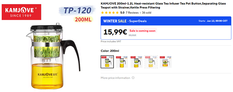 Хороший выбор проливных заварочных чайников KAMJOVE (я для чая давно уже использую только такие). В них даже черный чай можно заваривать 4-5 раз, а первая заварка - буквально 10-15 секунд. Здесь есть модели разных емкостей: 200, 300, 500 мл, литр и литр двести.