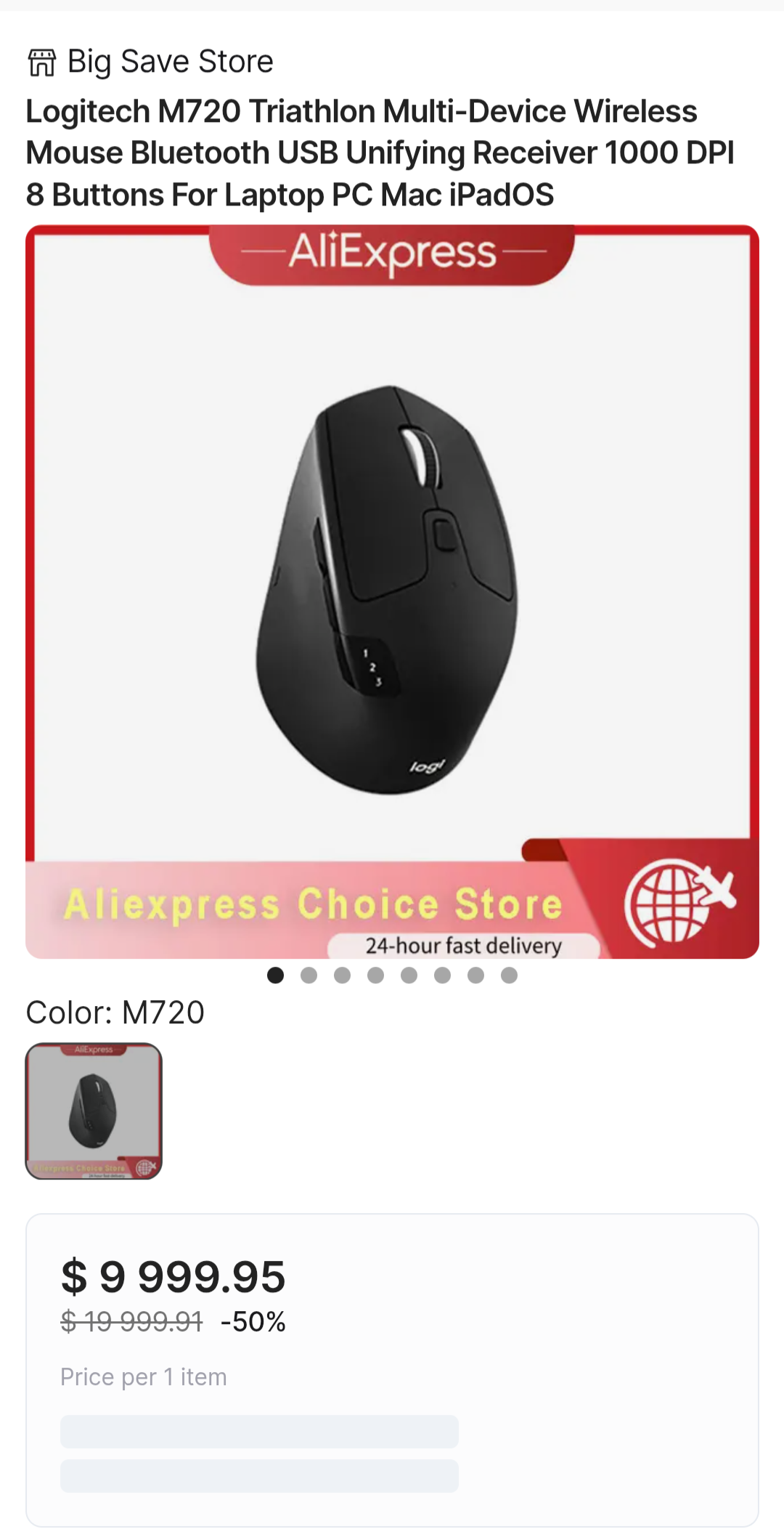 На Ali сейчас можно купить хорошую мышку Logitech M720 за 32 евро. На Амазоне она стоит 45 евро. У нее два варианта подключения - через донгл и по Bluetooth, 8 настраиваемых клавиш, разрешение 1000 DPI, а кроме того, она поддерживает подключение сразу к трем устройствам, которые можно переключать кнопками на самой мышке. У меня такое поддерживают мои клавиатура и мышь, и это прям очень удобно.