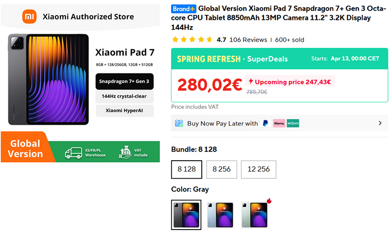 На рынке появился новый крутой планшет Xiaomi Pad 8, но он пока дорогой, минимальная цена - 423 евро, и если вам нужен достаточно мощный, при этом проверенный и не слишком дорогой планшет, то сейчас как раз самое время купить предыдущую модель Xiaomi Pad 7, которую нынче можно купить всего за 280 евро, а этот планшет очень хорош - я делал его обзор.