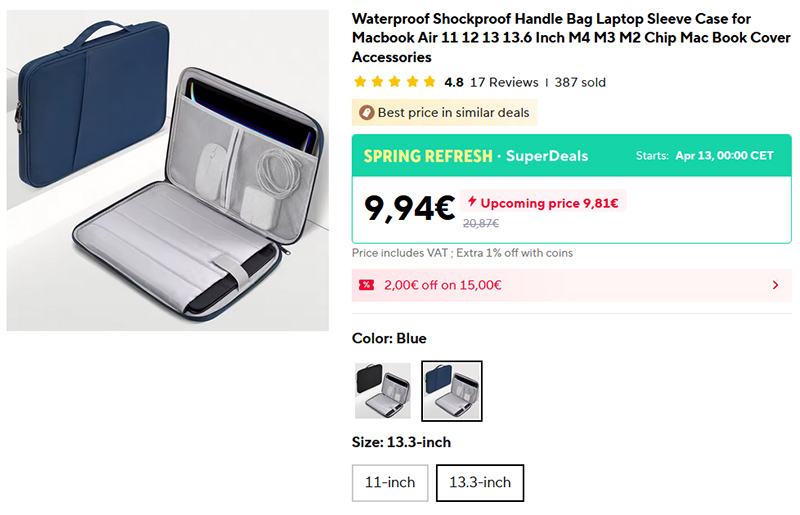 В рамках SuperDeals очень хорошая цена на один из самых продаваемых смартфонов Samsung Galaxy A56 5G. Версия с памятью 128 ГБ стоит 264 евро, версия с памятью 256 ГБ стоит 286 евро. На испанском Amazon минималььная цена на вариант со 128 ГБ - 310 евро.