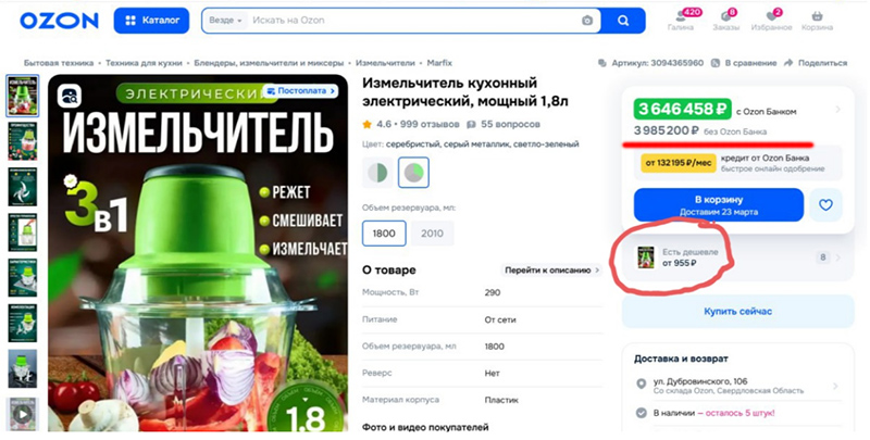 На "Озоне" продается вот такой симпатишный измельчитель за 3,6 миллиона рублей, рассказал Владимир. Не хотите за 3,6 миллиона покупать - ну, купите за 956 рублей, как последний лох.