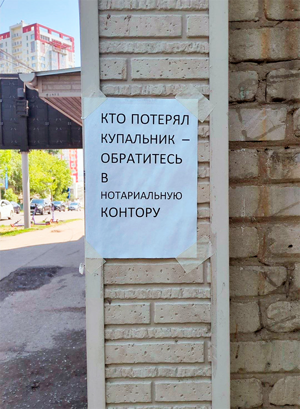 Ну потеряла жена купальник в нотариальной конторе. И чё такова? Как будто в нотариальной конторе только что-то заверять можно. А вдруг там нотариус симпатичный?
