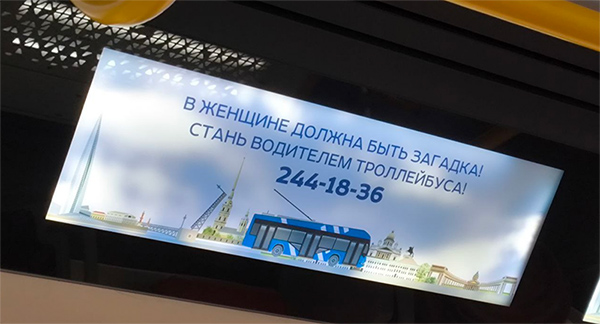 А теперь давайте вместе поймем, что загадочного может быть в женщине водительнице троллейбуса? Ну и нельзя не заметить, что этот слоган можно применять к чему угодно. Например: "В женщине должна быть загадка! Стань укладчицей шпал!"