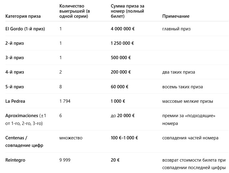 Но в этой лотерее разыгрывается несколько денежных призов - вот таблица всех выигрышей.