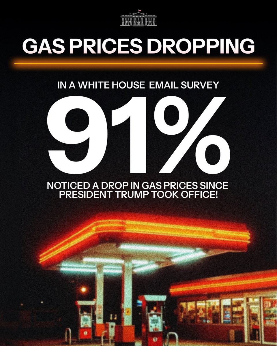 И - это был шок - 91% ответивших заявили, что они действительно заметили падение цен на бензин с момента вступления в должность президента Трампа.