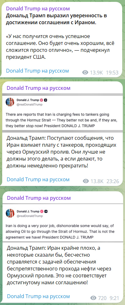 Трамп возмущен - Иран взимает плату за проход через Ормузский пролив. А ведь Трамп хотел сам взимать плату за проход через Ормузкий пролив, он это прямо заявлял. Так что Иран действительно себя ведет бесчестно. Але, Иран, где бабки Трампа?!!
