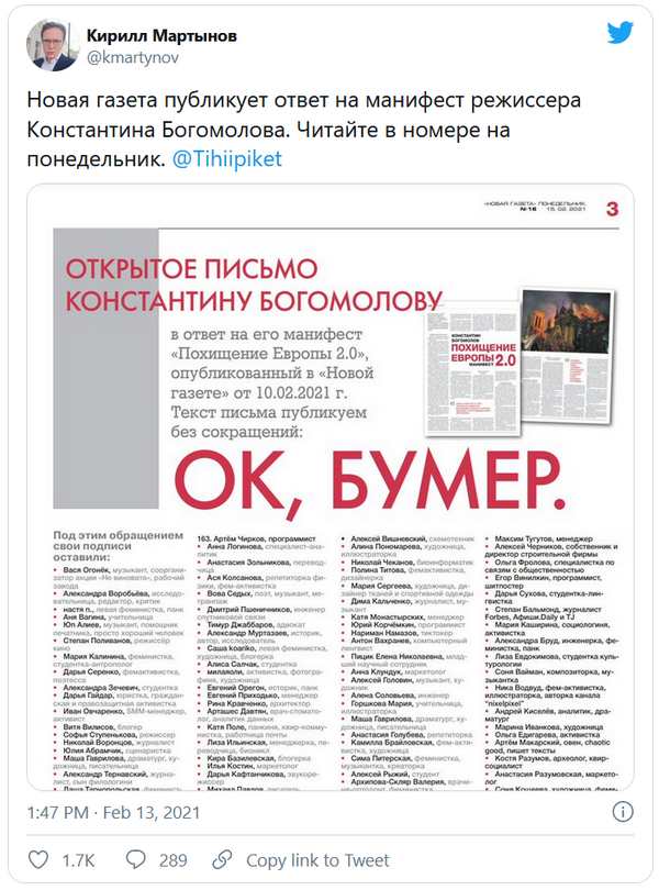 Вот кусочек о вакцинации. Про Петра Мамонова - я не знал, что он, оказывается, сам категорически отказался вакцинироваться.