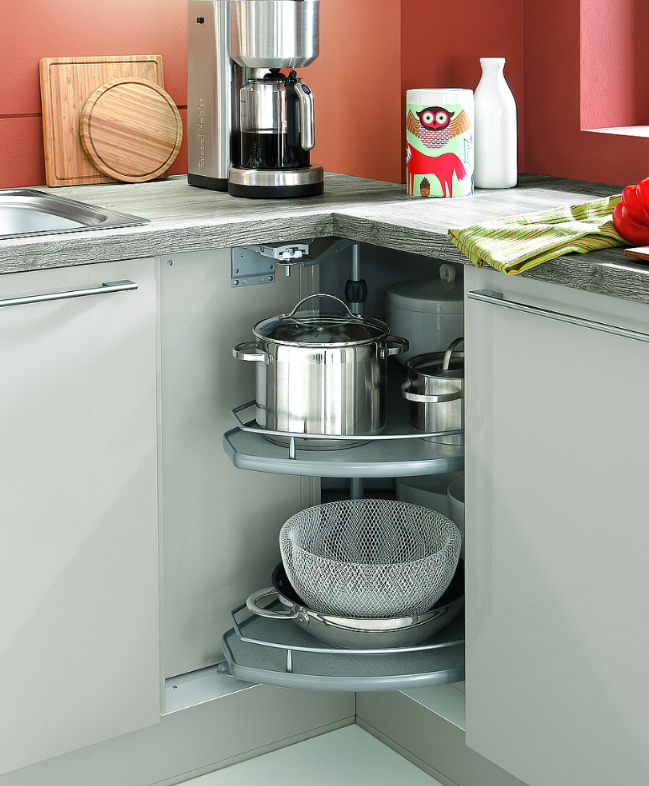В конечном итоге все упирается в размер кухни. Если она пять квадратных метров, то битва идёт за каждый квадратный сантиметр, и вертушка лучше чем выдвижные ящики. А если это дом и кухня 20,30, 40 квадратных метров, то с этим никто заморачиваться даже не будет.
