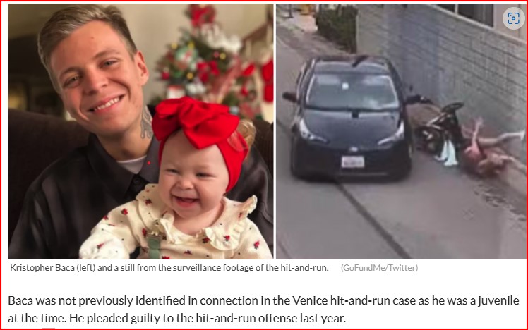 "A Venice woman who was hit by a car while walking her eight-month-old in a stroller"