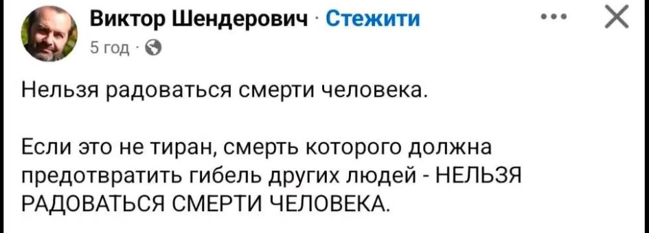 Ну а если кто занимается морализаторством то и не грех вовсе, достаточно чтобы он не говорил другим как себя вести в таких случаях. В этом и только в этом косяк Шендеровича. Не хочешь радоваться, ну не радуйся. Другим указывать не надо, могут ведь и послать справедливо.