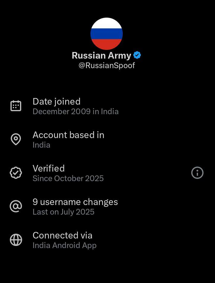 Забавно, что пропагандоны настолько обленились, что даже ведение пропагандистских аккаунтов в сети Экис отдали на аутсорс индусам. Не удивлюсь, что и многие ТГ-каналы якобы с мест ведутся из Индии за доллар в месяц и плошку риса. Причем, судя по всему, это явление международное и не относится только к какой-то одной стране.