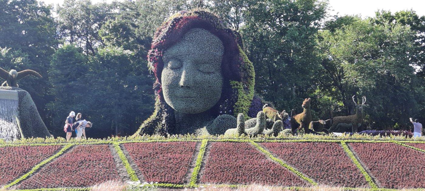 Мозаикультура (Mosaiculture) - это садоводческое искусство создания гигантских скульптур, напоминающих топиарии, с использованием тысяч однолетних декоративных растений, которыми покрывают стальные каркасы.