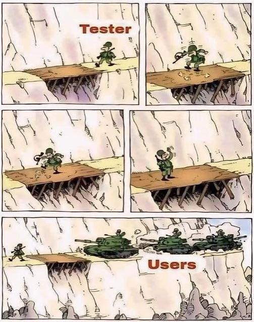 Это только если тестер и девелопер - одно лицо. Настоящий QA сразу на танке предет, даже если мости пешеходный
