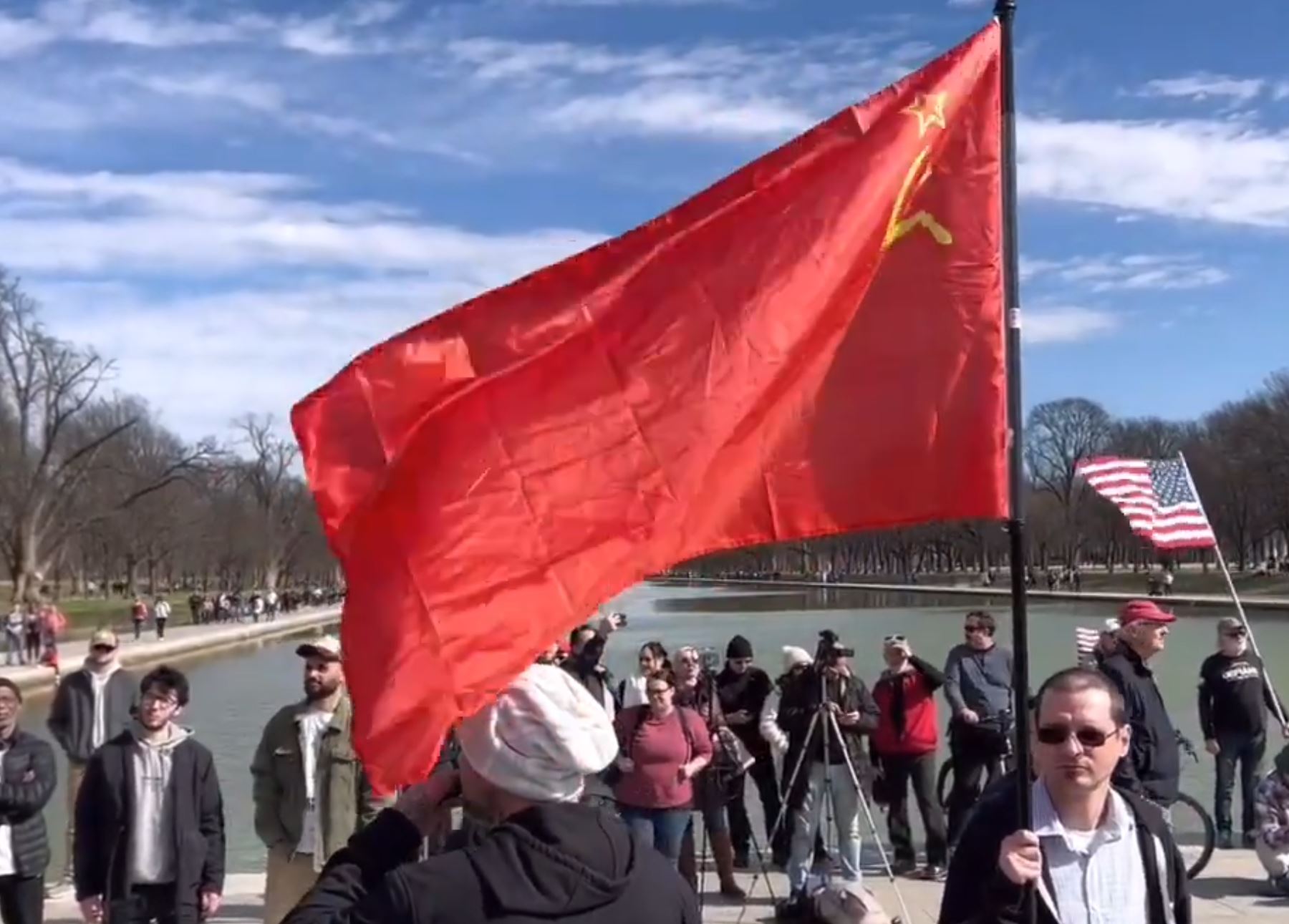 Feb 20, 2023 Флаг СССР над Вашингтоном: митинг «Остановите войну!» перед Белым Домом в поддержку России