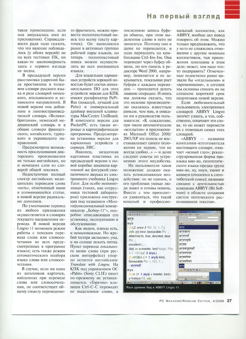 Распознается текст очень быстро, так что после сканирования остается только выбрать пункт меню "Отправить текст в Microsoft Word", задав опционально возможность сохранения картинок. Смешанный (русский с английским) текст определяет вполне достойно.