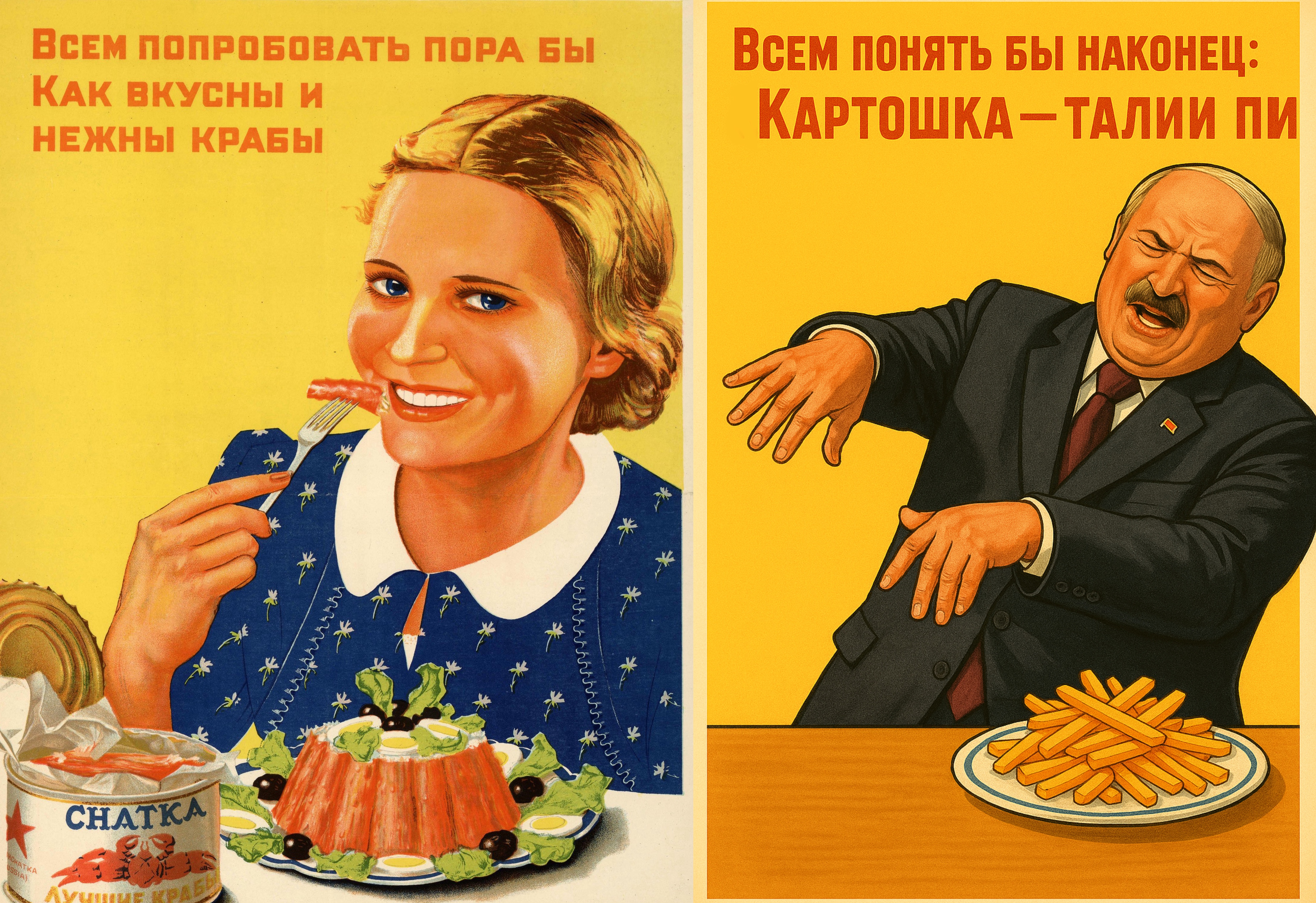 «Если мы будем есть картошку, как пишем в «тиктоках», то худенькими не будем. Один раз в неделю, два максимум, и то запеченную, пюре», — сказал глава страны во время поездки в Волковысский район. (Отсюда.)