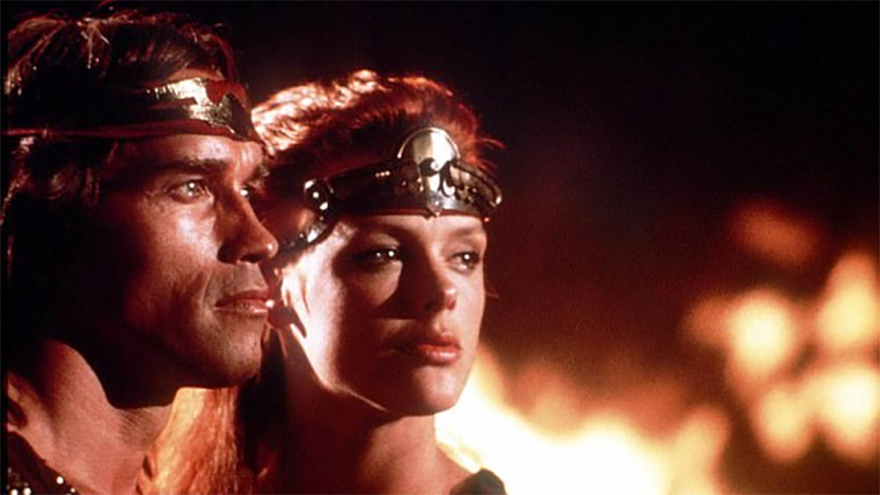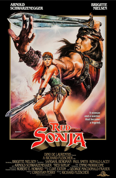 "Рыжая Соня" 1985 года - картина, во-первых, скандальная, а, во-вторых, провалившаяся со страшной силой. Режиссер Ричард Флейшер, поставивший "Конана-разрушителя" с Арнольдом, зазвал в эту "Рыжую Соню" Шварценеггера, обещая, что у него там будет очень небольшая роль. Ну и гонорар был обещан соответствующий. Однако в процессе роль Арнольда все расширяли и расширяли, и в итоге его персонаж стал главным героем картины.