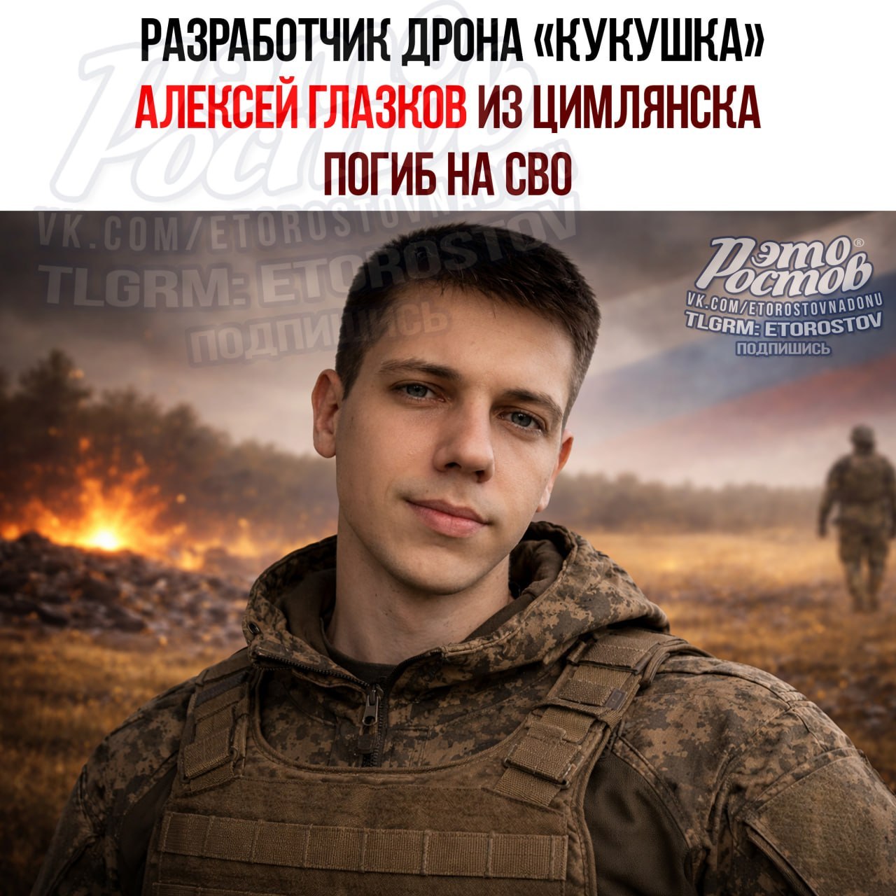 В Украине был ликвидирован 31-летний Алексей Глазков, инженер-разработчик дрона «Кукушка» из Ростовской области.