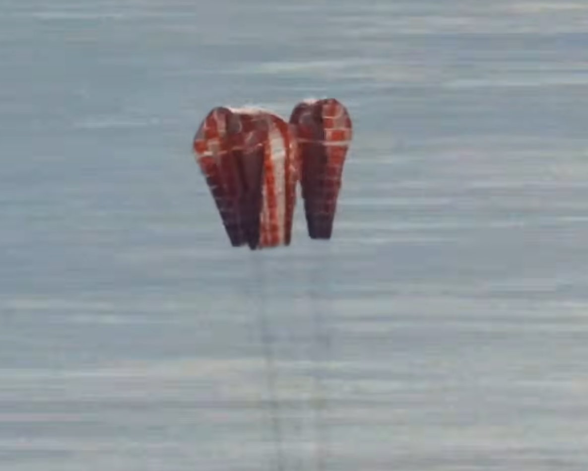 🟢 Выпуск парашютов и посадка на воду в заданной зоне;