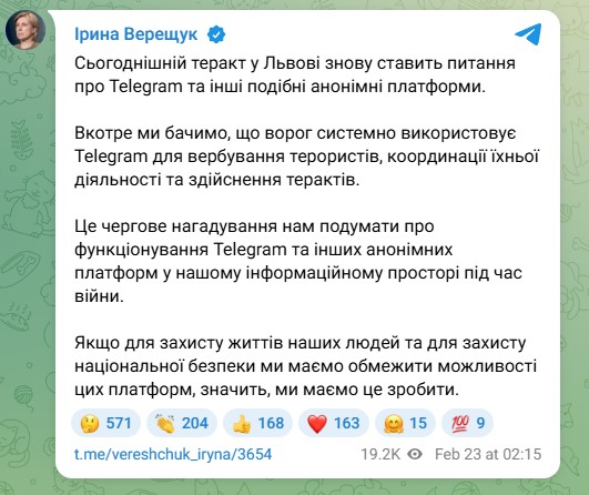 То, что все каналы оповещения о ракетах, кабах, шахедах и прочих молниях и ланцетах работают в тг и принесли за 1 день больше пользы, чем вся эта их тупорылая рада слуг народа за 7 лет - она не знает. ей не надо просто.
