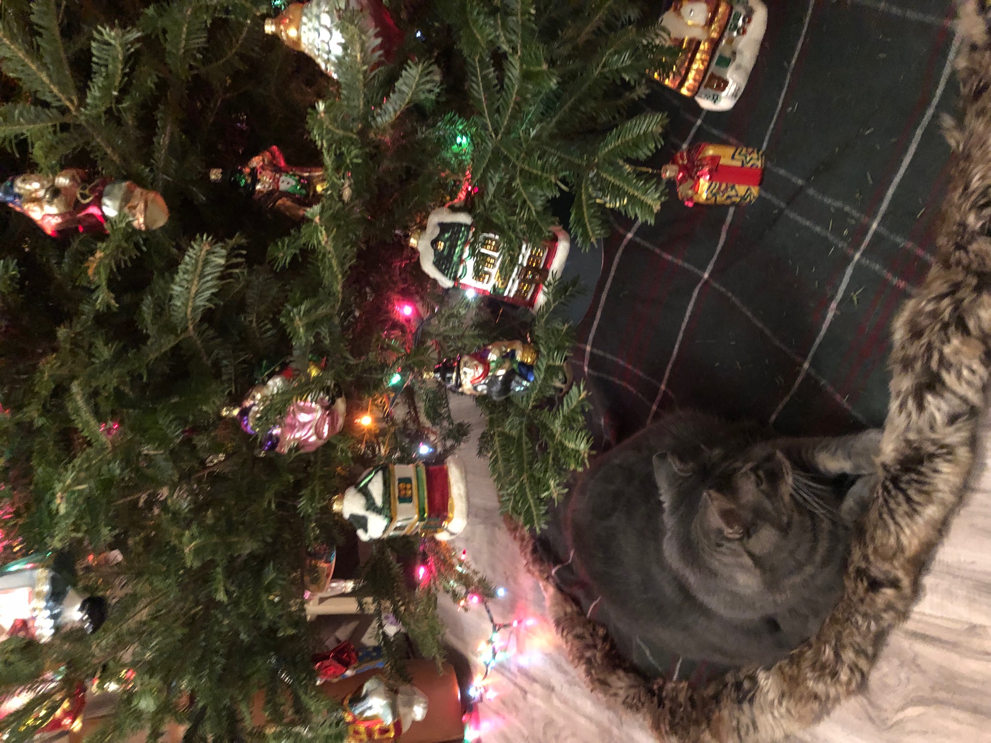 Я не покупала ёлку, потому что боялась, что кот её жрать будет. Он товарищ с непредсказуемыми вкусовыми пристрастиями. Но удивил - не ест и даже запах ему не понравился. А она маленькая, но - пахнет. Натуральные смолы делают своё новогоднее дело)