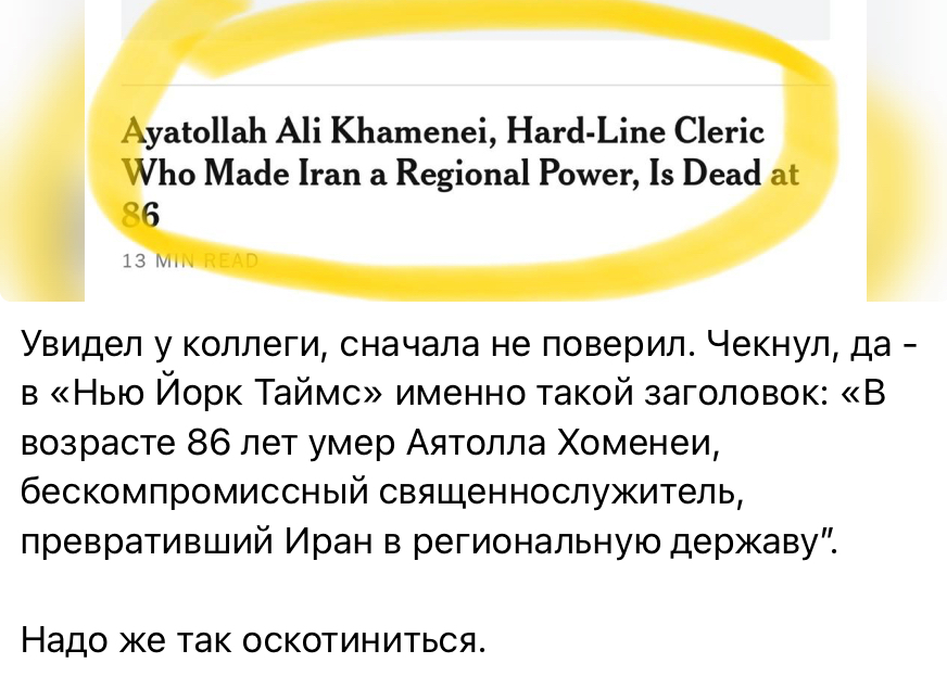 В издании The New York Times всякие подробности (paywall) операции по ликвидации Хаменеи.