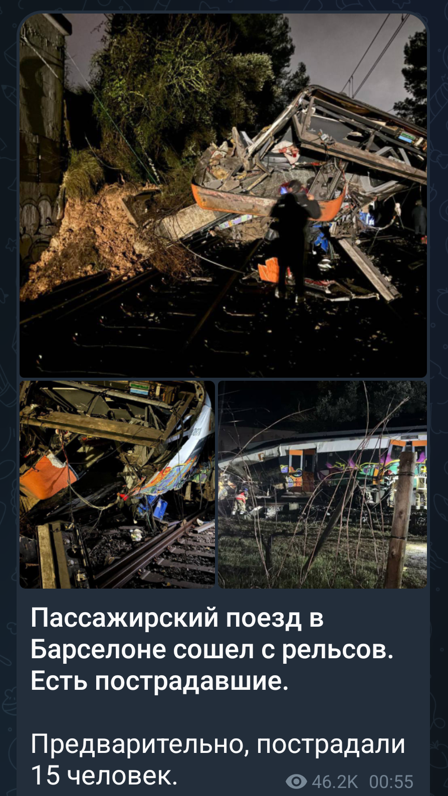 Под Барселоной сошел с рельсов поезд, погиб машинист, десятки людей ранены