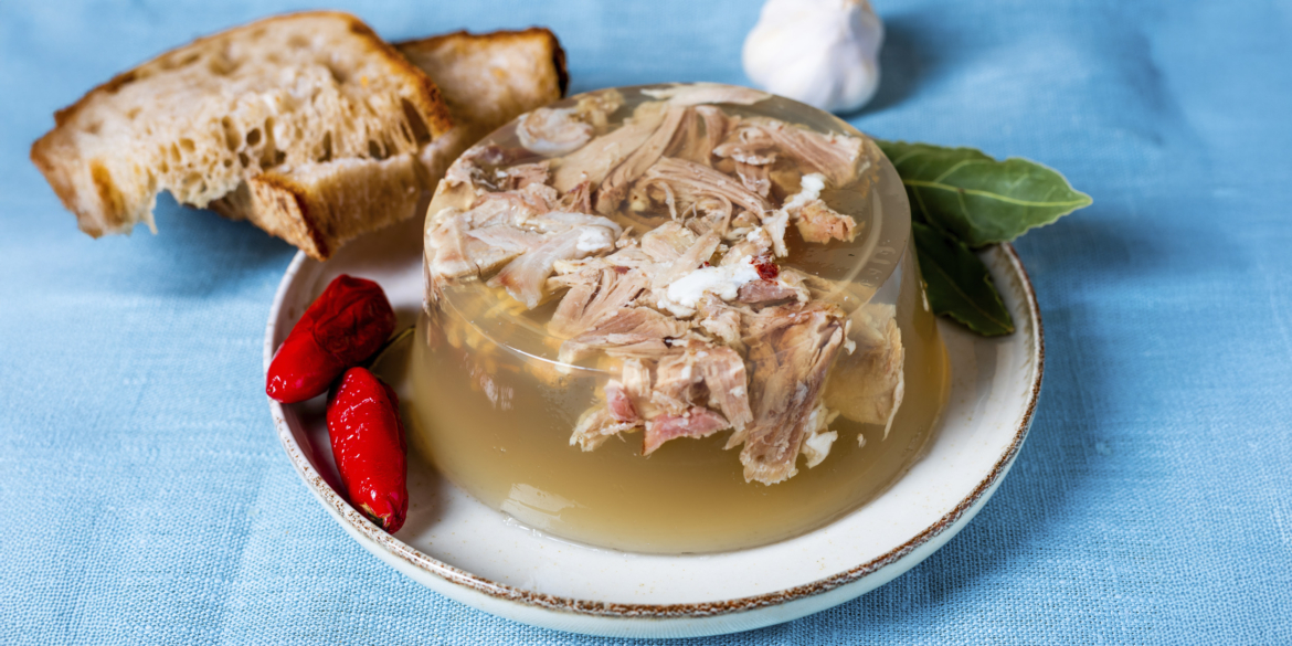 Поскольку холодец делают из хрящей и кожи, в нём содержится больше белка коллагена, чем в простом мясном бульоне. Во время приготовления часть коллагена разрушится и в желатин. Его молекулы меньше, чем у коллагена, и они будут быстрее перевариваться до аминокислот, из которых состоит любой белок.