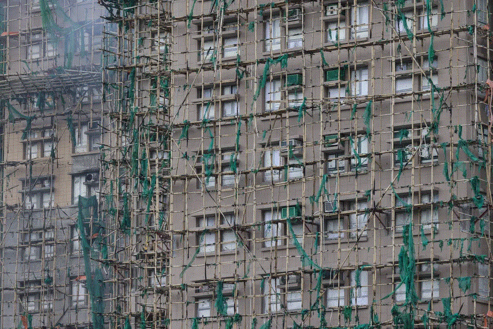 Уже выяснилось, что там не только сетка и бамбук были. Большинство окон были закрыты пенопластом или чем-то аналогичным (на фото видно белые окна). Уж не знаю, изнутри они его лепили или снаружи, но полиция считает, что это помогло пожару: Hong Kong police believe the deadly fire at Wang Fuk Court in Tai Po may have been spread by unsafe scaffolding and foam materials used during maintenance work.