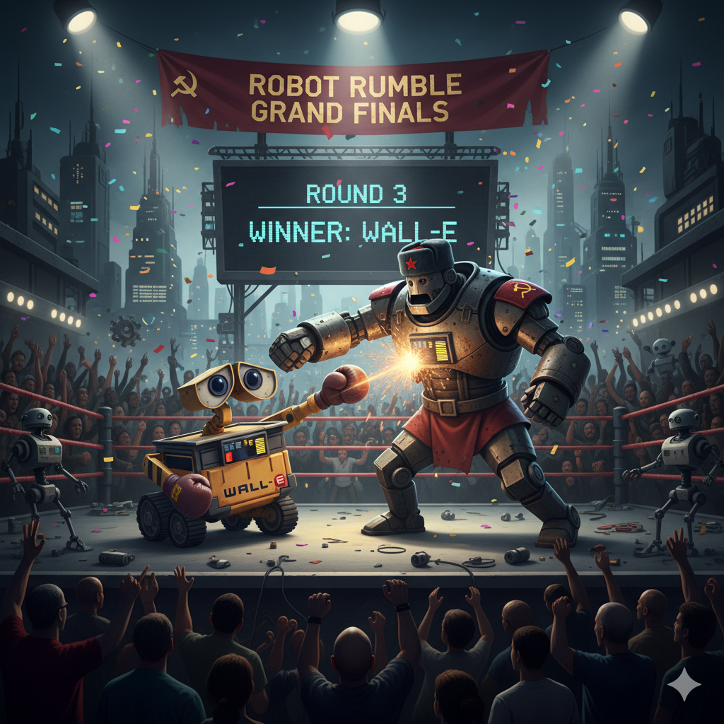 Там еще потом два таких же прообраза робота тряпочку пытались натянуть.