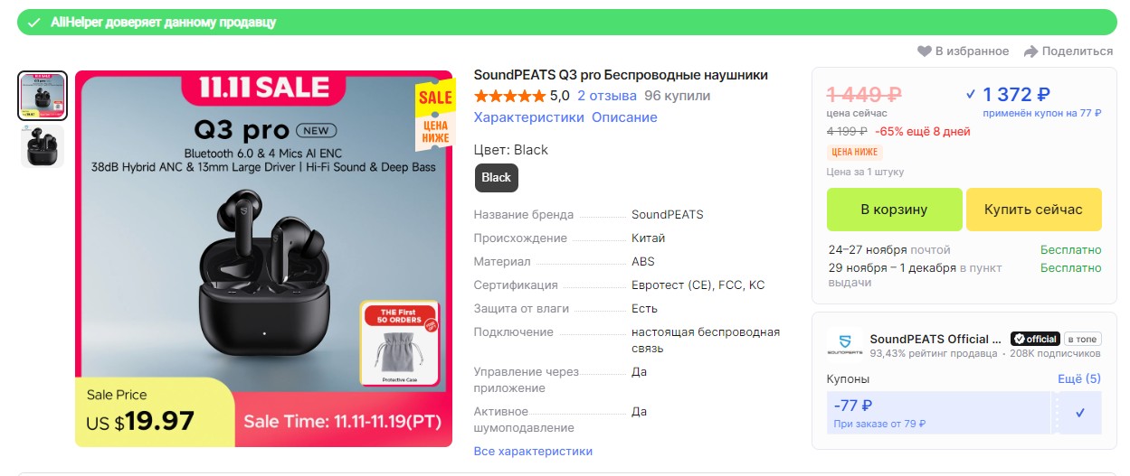На странице товара есть купон продавца на 8 долл + промокоды, так что выходит менее 20 долларов, что для данного производителя весьма дешево.