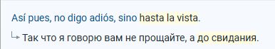 Угу.А теперь главное. Поскольку по задумке режиссёра терминатор тут должен был сказать что-то не на родном языке, то в испанской версии второго терминатора нет никакой хастылависты. Он там говорит "сайонара".Ваш кэп.