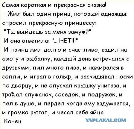 P.S. Я со своими 178 мог бы в принципе и соврать - если что, накинув +2 см. Но что если однажды ночью придирчиво измерит - пока буду спать? А утром скажет - я ухожу, потому что так жить нельзя!