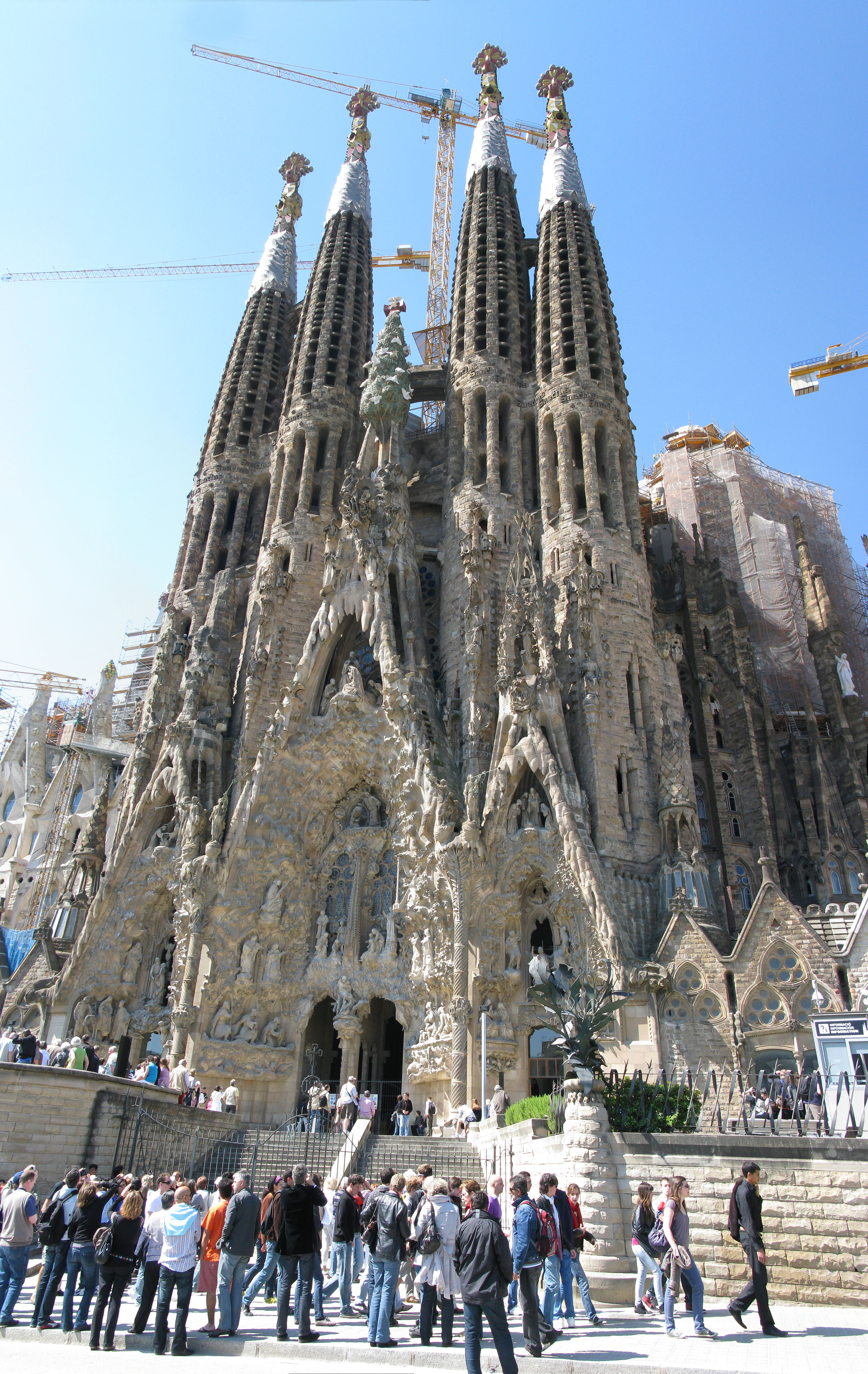 Наконец-то увидел и заснял Церковь святого семейства в Барселоне в хорошую погоду. При щелчке по превьюшке откроется полноразмер 2608х7255 (3,5 мега) - можно рассмотреть подробности.