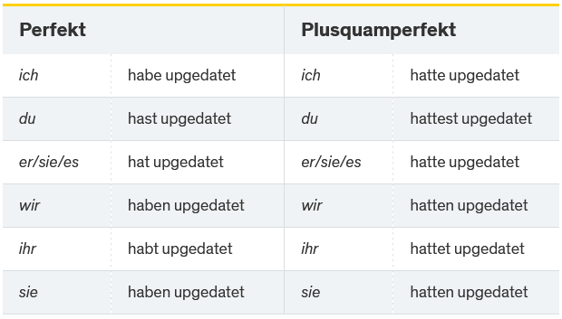 Updaten/geupdatet/mach einen Update.