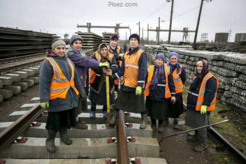 А что, мужики уже начали таскать шпалы? Простите, я не особо слежу за современными социальными тенденциями. Но те бригады по укладке шпал, которые я помню со времен СССР, выглядели примерно так: