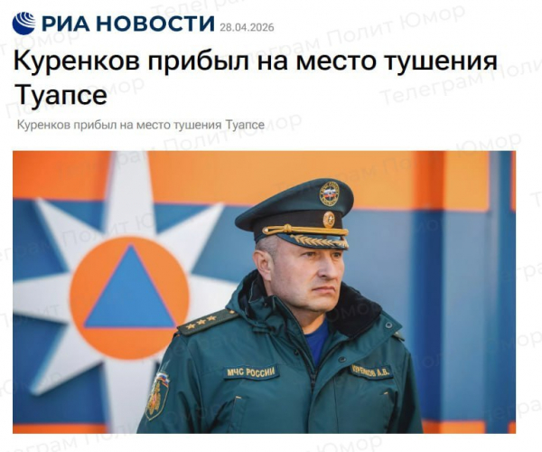 И очень зачётный заголовок у ВРИА новости: "прибыл на место тушения Туапсе".