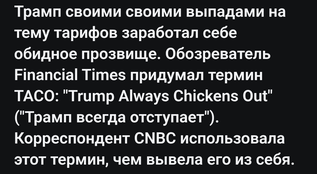 И вот, подытоживая всё вышесказанное, вернёмся к вашим надеждам на то, что Трамп будет делать всё в точности наоборот: начнёт активную и всеобъемлющую поддержку Украины. Вы видите здесь хоть какую-нибудь логику? Какие-нибудь причинно-следственные связи? Я допускаю, что вы просто значительно умнее меня и способны просчитывать будущие события, но вот я вообще не вижу никакой логики.