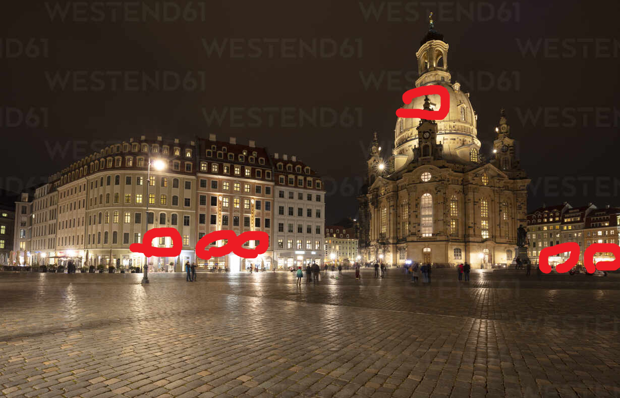 Теперь смотрим на "полную темень" на немецких фото... хоба! Люди. О чём это говорит? Правильно. Проспект Независимости ВЫТЯГИВАЛИ чтоб сделать светлым. На площадях Германии - просто светло.