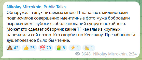 Судя по всему, боброедке пришлось за баблосики организовать в ТГ-миллионниках соболезнования самой себе. Удовольствие это недешевое, но она может себе это позволить: хорошо известно, сколько денег получала из бюджета эта скотская парочка.