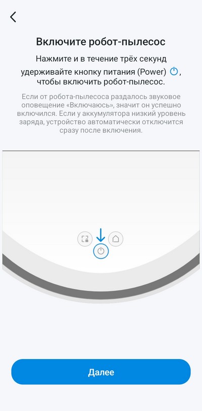 - Кнопка Power/Clean (мощность/уборка): Однократное нажатие запускает или приостанавливает уборку; удержание 3 секунды включает/выключает робот.