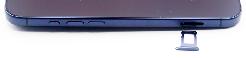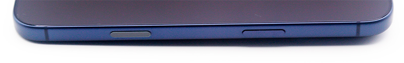 На левой грани - универсальная настраиваемая "кнопка действия", регулировка громкости и слот со вставкой под симкарту.