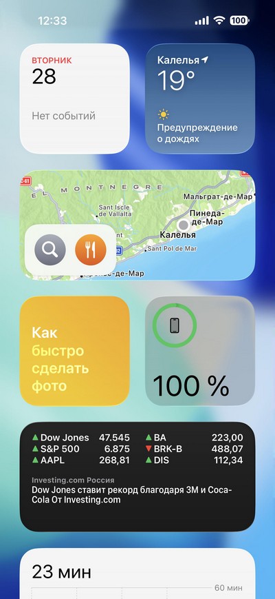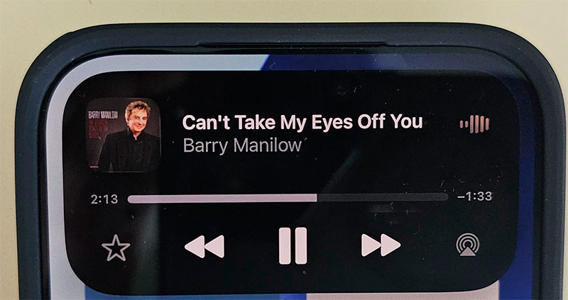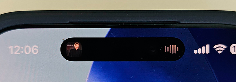 Режим Dynamic Island (динамический остров) работает как и раньше. Если в фоне работает какое-то активное приложение - аудиоплеер, таймер и так далее, - то этот островок расширяется и на нем появляется соответствующая информация.