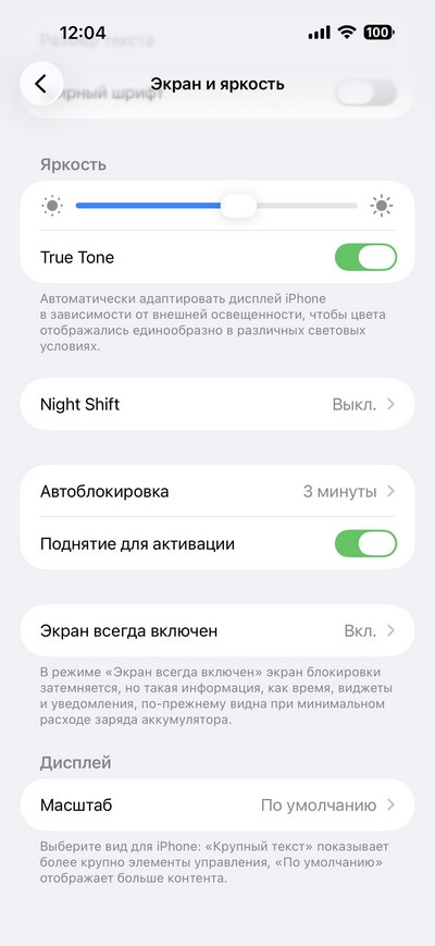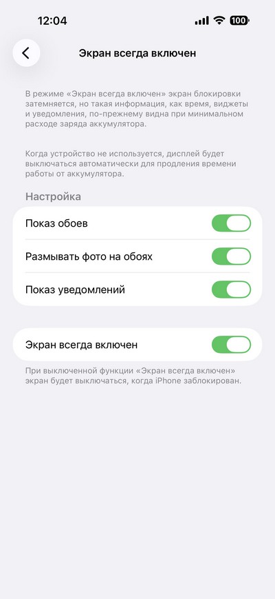 Настройки режима всегда включенного экрана.