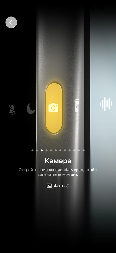 Центр управления: быстрые переключатели и некоторые приложения. При длинном нажатии на некоторые пиктограммы появляются дополнительные меню - вот, например, меню камеры.