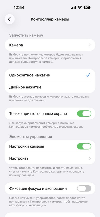 Настройки камеры и контроллера камеры.